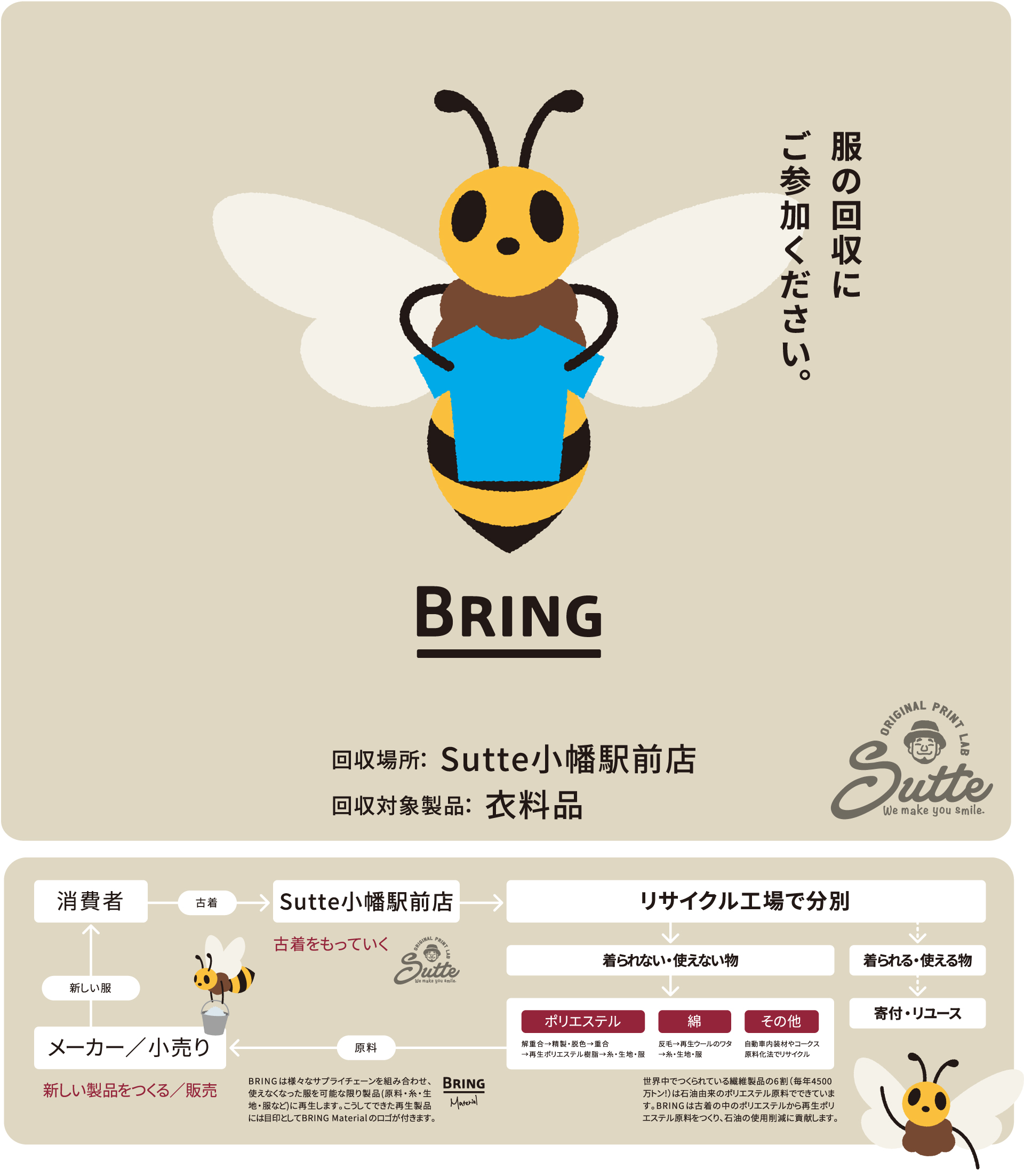 スッテの新たな取り組みとして、廃棄されるTシャツの回収と、